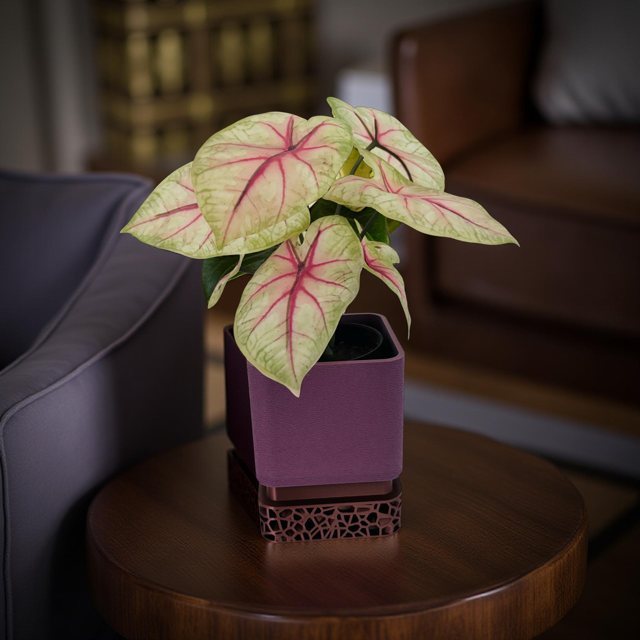 This 3D printed Mauve & Copper square planter combines modern design with practical functionality.