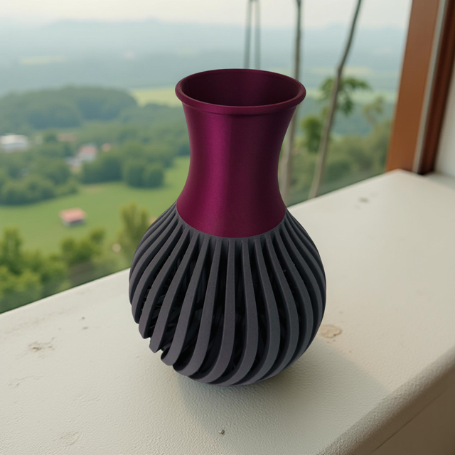 This 3D Printed Grey Silhouette Vase features a sleek Rose neck, combining modern design with subtle elegance.