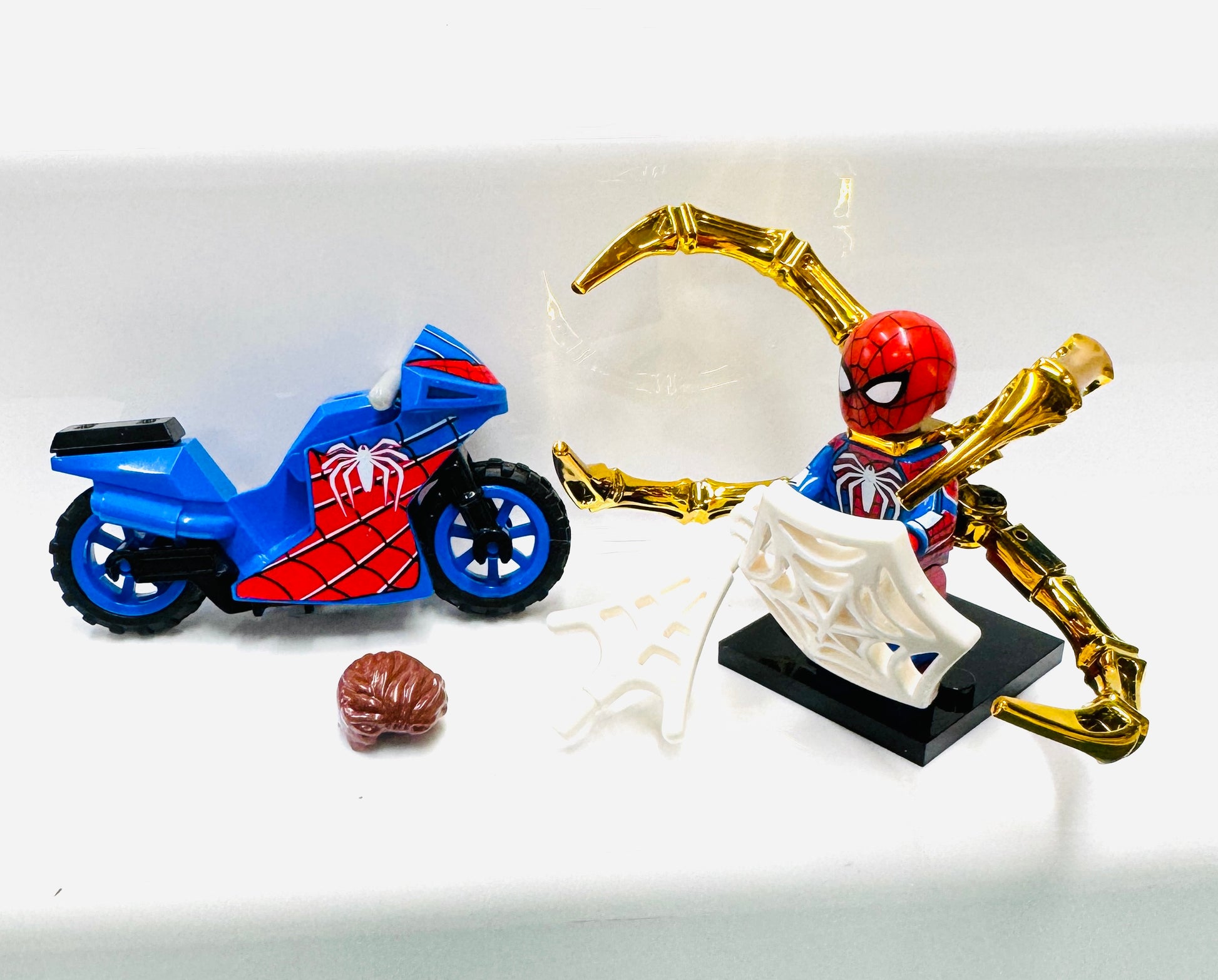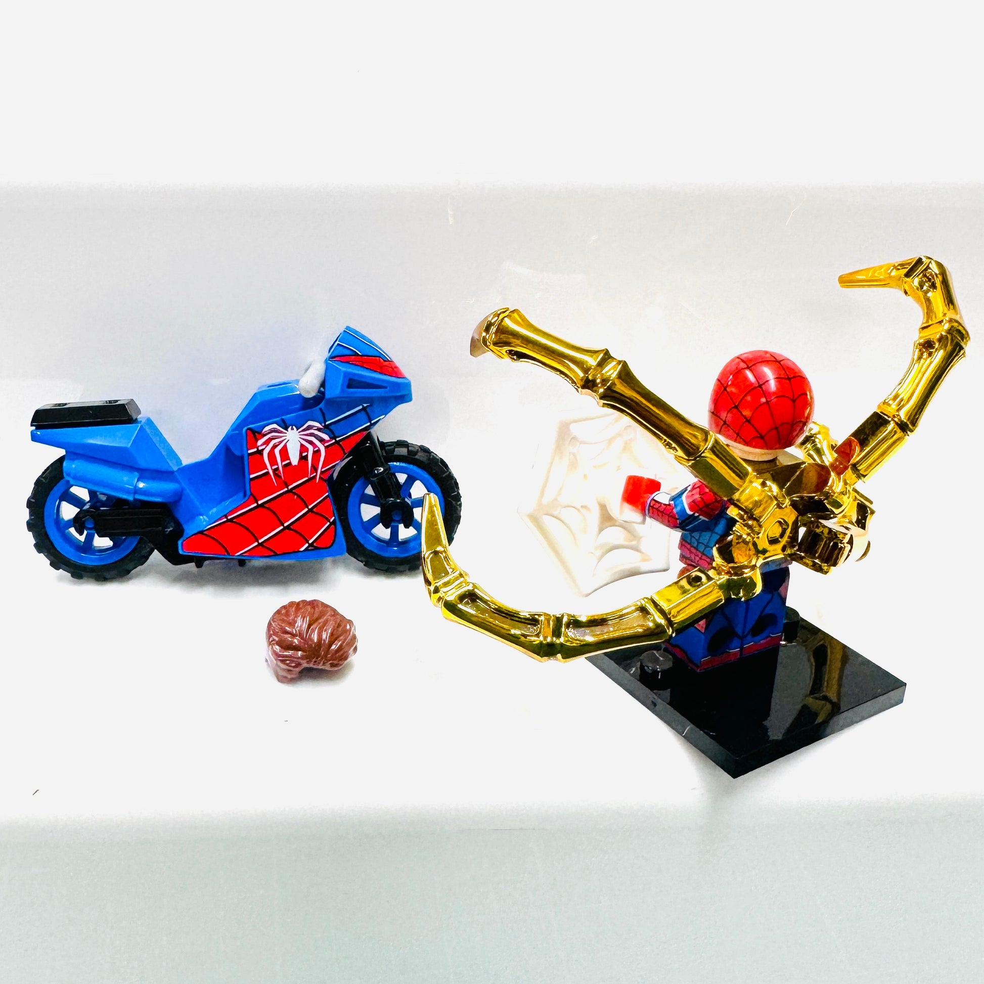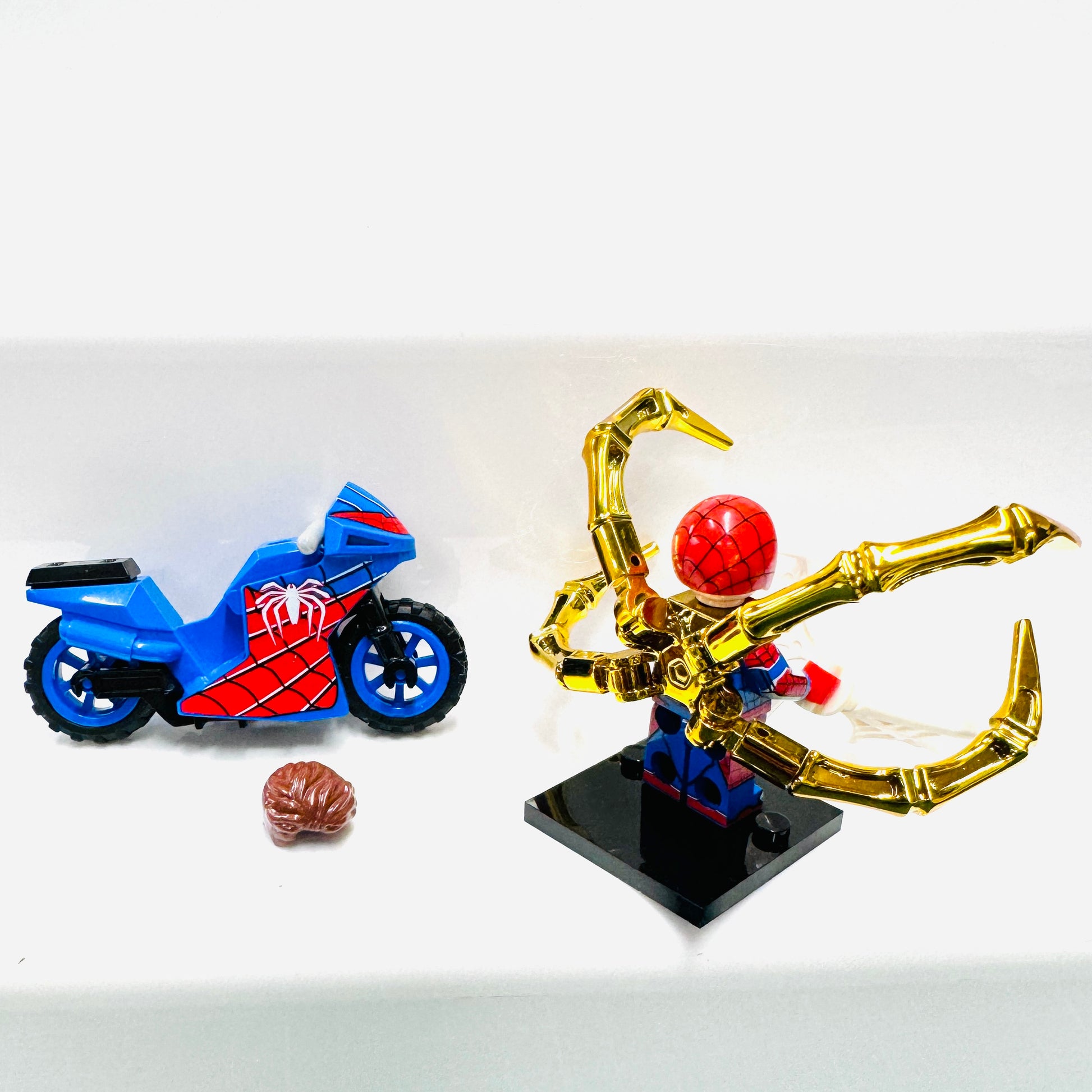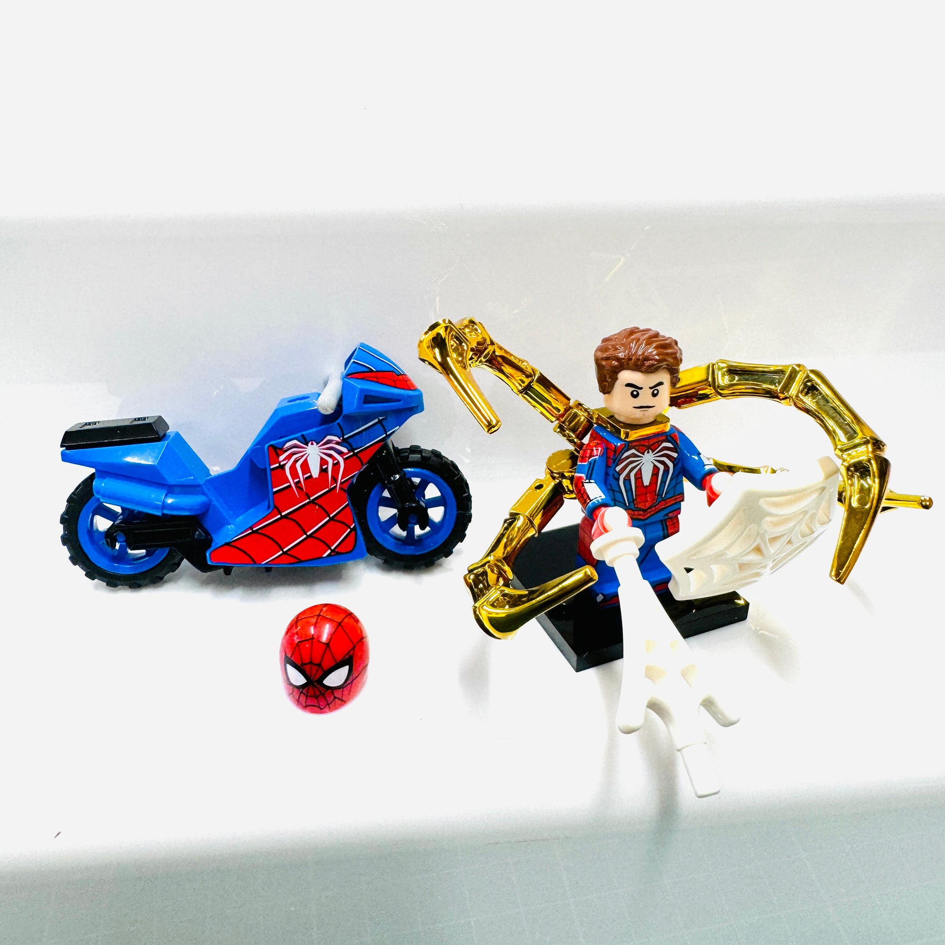 Custom Super Hero Spiderman on a blue bike Minifigure