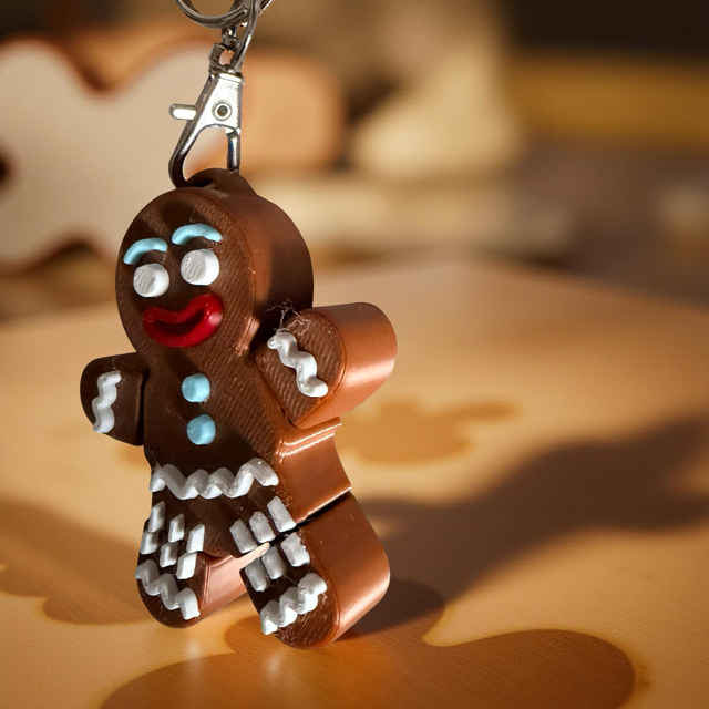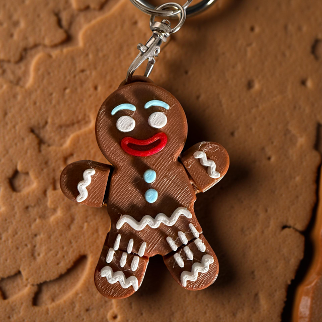 This charming 3D-printed gingerbread man keychain brings festive cheer.