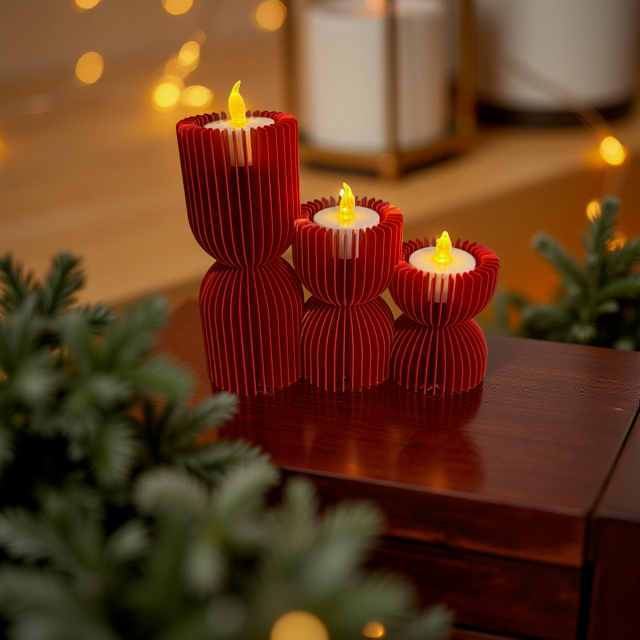 Bring a touch of cozy Christmas magic to your home with this Trio of Interlocking Tealight Holders Featuring a textured hourglass design that holds your Tealights perfectly.